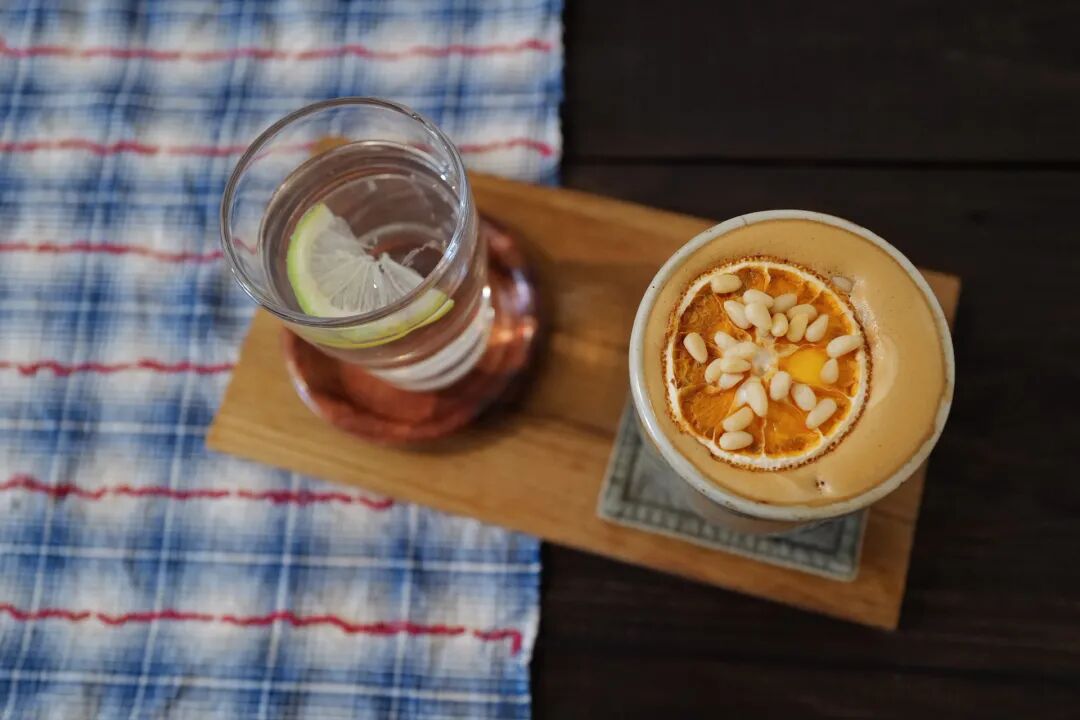 我点的是「杜松子柑橘拿铁」,柔和的果香调,又有松子的油脂香,很平衡温暖的一杯。