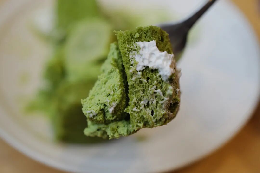 好不容易登岛了,蛋糕卷也得尝尝,口味选择很多。我点了一款「抹茶茉莉青提卷」,糕体蓬松湿润,抹茶的香气也浓,整个人都被甜品带来的幸福感包围了。