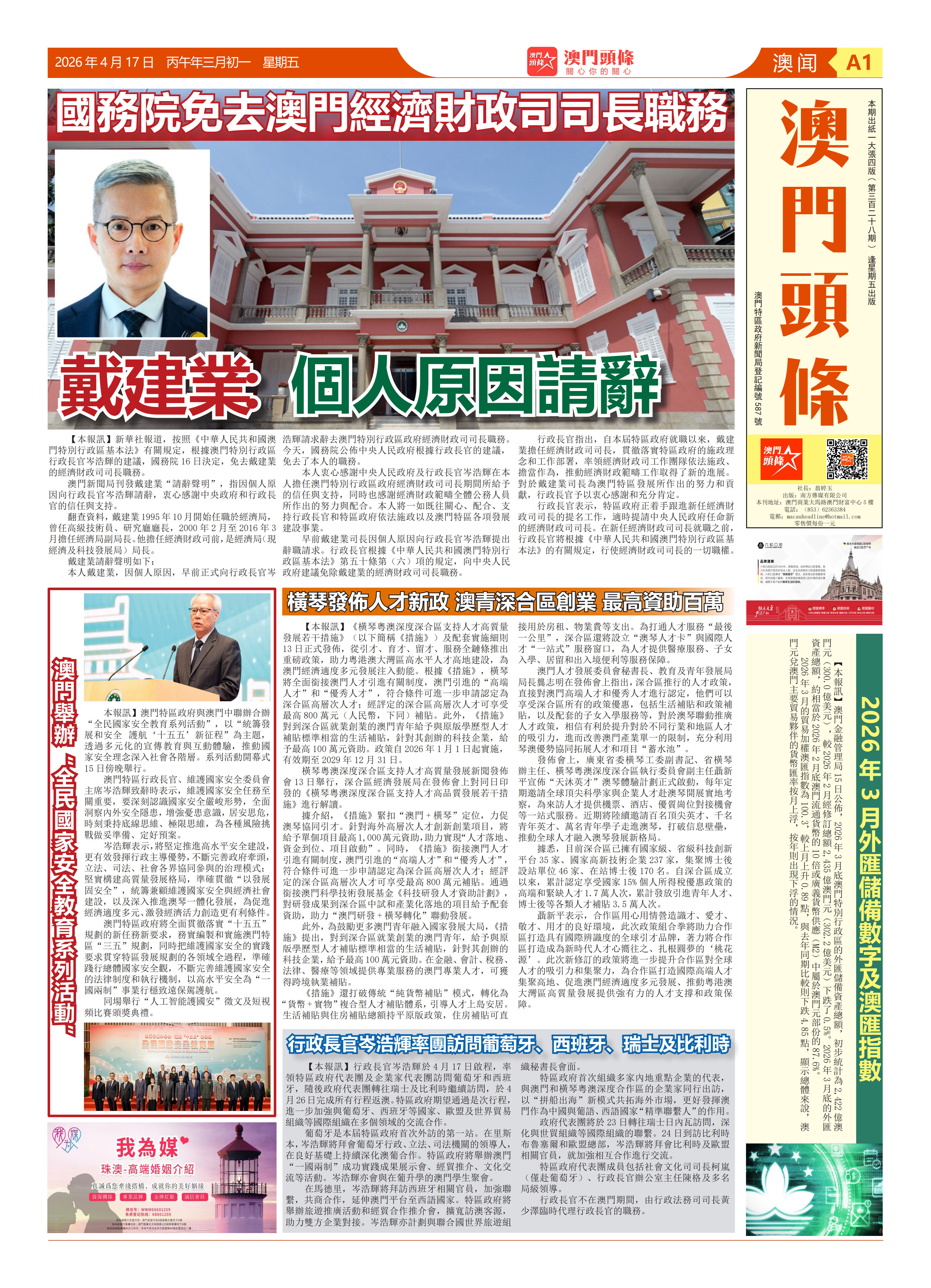 個人原因請辭 國務院免去 戴建業經財司長職務