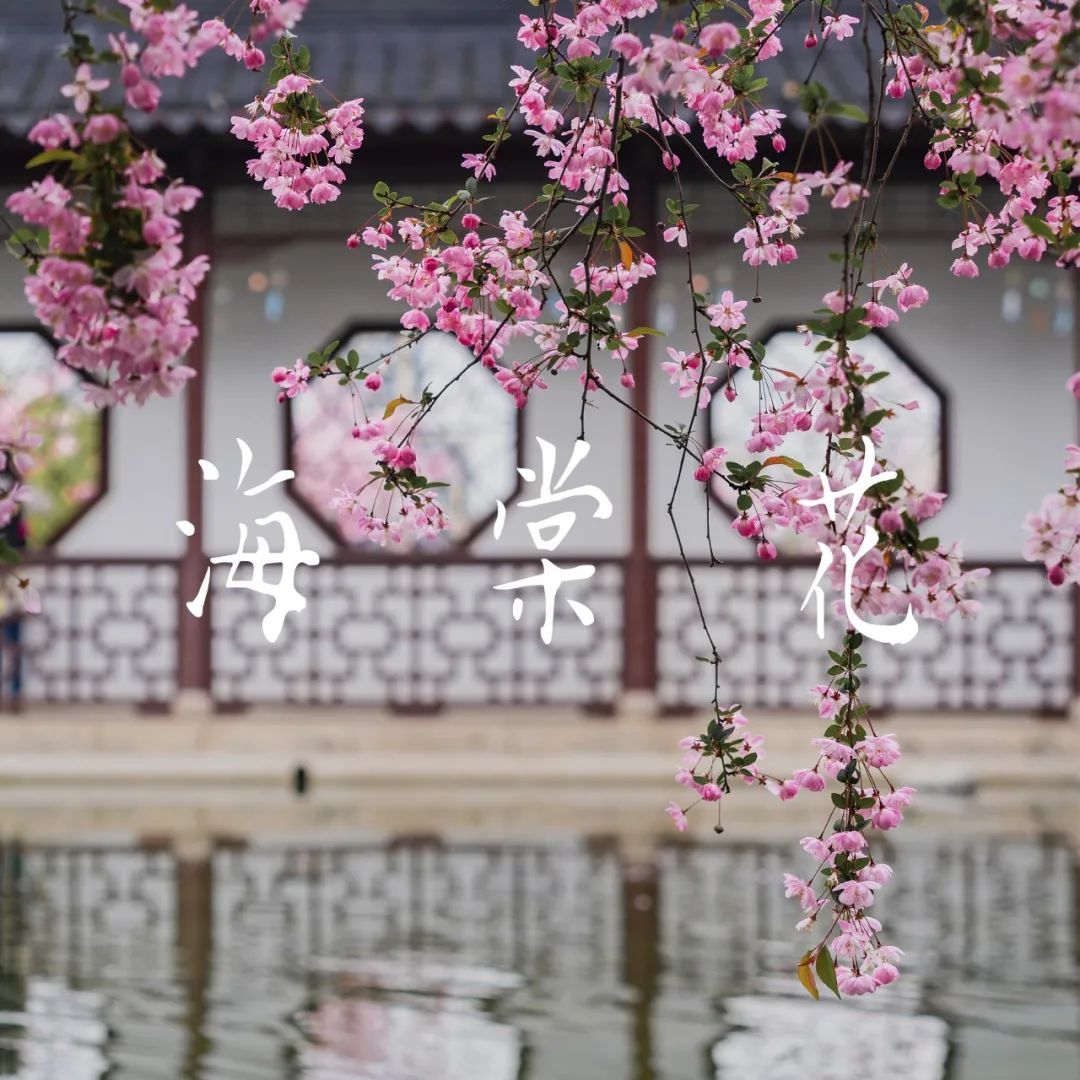 不同于京城的古建海棠,莫愁湖边的垂丝海棠开得正盛。