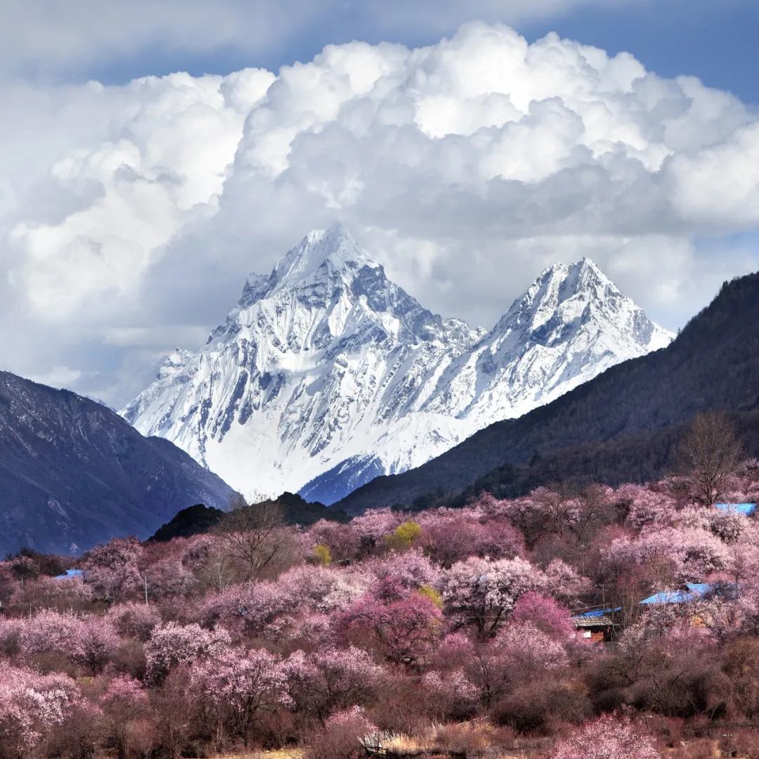 冬日西藏的银装还未褪去,属于春日的片片粉红已经到来,属于“雪域江南”的浪漫列车已经出发。位于拉萨以东的林芝,漫山遍野的桃花和高耸入云的雪山,一团团粉雾点缀在整片雪域高原。