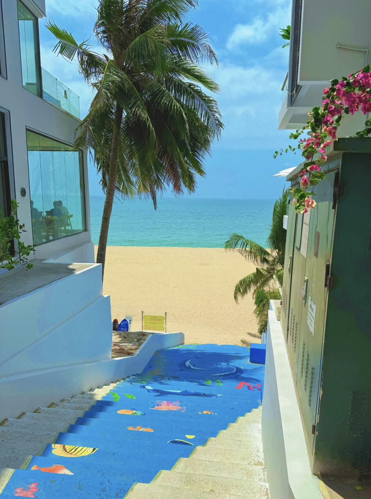 酒店门口有一条通向海边的小路,引来不少游客的打卡。从坡上缓缓走下,沙滩、蓝海清晰可见,虽然依旧隔着一段距离,那一抹蓝却依旧迷人。