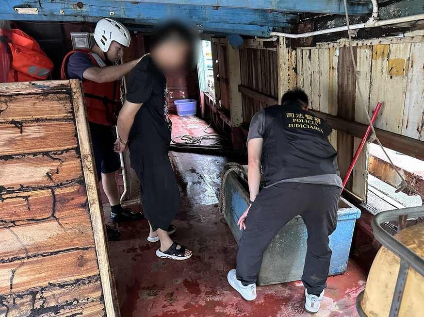 【澳門日報消息】司警及澳門海關聯合偵破一宗懷疑協助偷渡案件,昨日在內港一帶部署,期間發現一艘漁船緩緩靠岸,隨後涉案的一名二十多歲內地非法入境男子登岸,並登上現場一輛七人車。司警及海關隨即開展行動,分別截停七人車及漁船,車上司機為六旬胡姓本地無業男子,及三十多歲鄒姓內地商人、涉案的非法入境男子;駕船的為三十八歲唐姓內地船員。司警並於路氹某酒店房間截獲五十多歲吳姓內地男子。