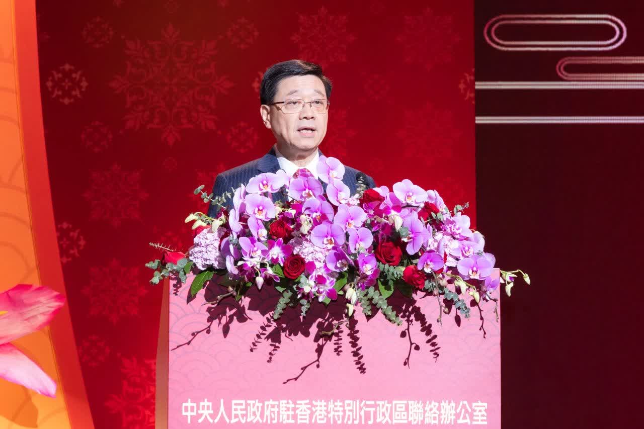 李家超在致辭時表示,2024年是新中國成立75周年,香港在龍年也取得一系列令人鼓舞的成績。特區歷史性完成《基本法》第二十三條本地立法的憲制責任,完成等待了二十六年八個月十九天的光榮使命。香港在世界舞台上熠熠生輝,社會各界喜事連連,多項挺港惠港措施出台,迎來發展經濟、改善民生的最佳時機。習近平主席在慶祝澳門回歸祖國25周年大會暨澳門特別行政區第六屆政府就職典禮上發表重要講話,指出「一國兩制」蘊含的和平、包容、開放、共享的價值理念,是中國的,也是世界的,值得共同守護。習主席深刻總結了「一國兩制」實踐經驗,彰顯了中央全面準確、堅定不移貫徹「一國兩制」方針的堅定立場,為香港未來發展和發揮「一國兩制」制度優勢指明方向,為香港由治及興注入強勁動力。展望蛇年,特區政府將團結社會各界,繼續銳意改革、奮發作為,實現三個新願景。一是香港將有如靈蛇蛻變,吐故納新。更好地發揮「一國兩制」制度優勢,推動香港內聯外通,持續優化互聯互通機制,擴展國際經貿網絡,爭取與更多傳統市場和共建「一帶一路」地區建立投資協議和自由貿易協議。二是香港將宛若靈蛇機智,把握機遇。積極對接國家戰略,塑造經濟發展新動能新優勢。推動香港建設大宗商品交易生態圈,構建國際黃金交易中心。創新科技引領經濟發展,積極發展河套深港科技創新合作區和北部都會區等具有「一國兩制」特色的高水平開放建設。三是香港將猶如靈蛇堅韌,遇強愈強。特區政府會繼續帶領社會,齊改革、同發展、惠民生、謀幸福,更主動變革,以更開創性的思維、更果敢的行動迎接挑戰,抓住機遇,推動香港社會各領域的轉型升級,向世界展現「一國兩制」的蓬勃生機。