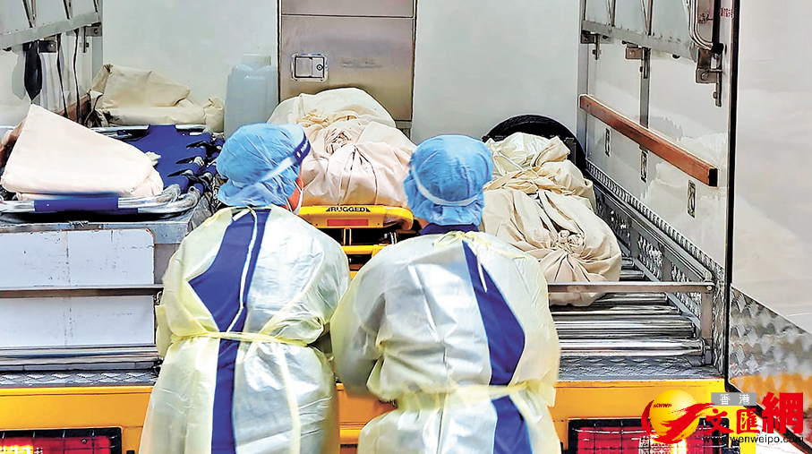 ●仵工將二人遺體舁送殮房。香港文匯報記者劉友光 攝
