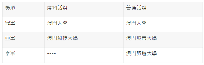第二十三屆澳門高等院校學生辯論比賽獲獎名單如下: