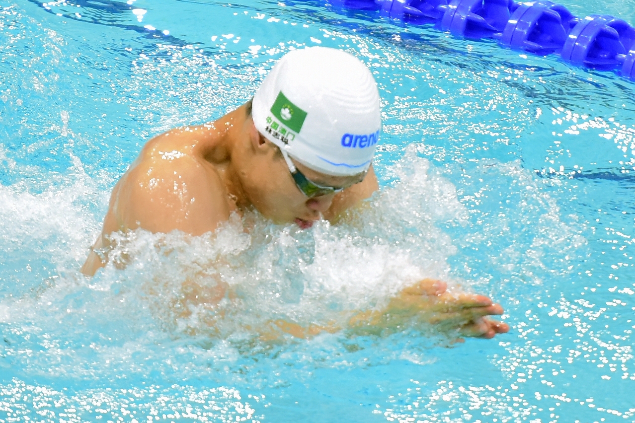 游泳項目繼首日有吳致軒(NG CHI HIN)闖入50米蝶泳半決賽後,今早再有林志聰(LAM CHI CHONG)在男子50米蛙泳游出個人最佳時間28秒38,以預賽總成績第15位躋身半決賽,晚上進行的半決賽,林志聰(LAM CHI CHONG)游出27秒98,總成績排第12位,未能再進一步入決賽;同樣今早出戰50米蛙泳預賽的隊友周文顥(CHAO MAN HOU)游出28秒58,與晉級時間僅相差0.16秒,總成績排第19位完成賽事。