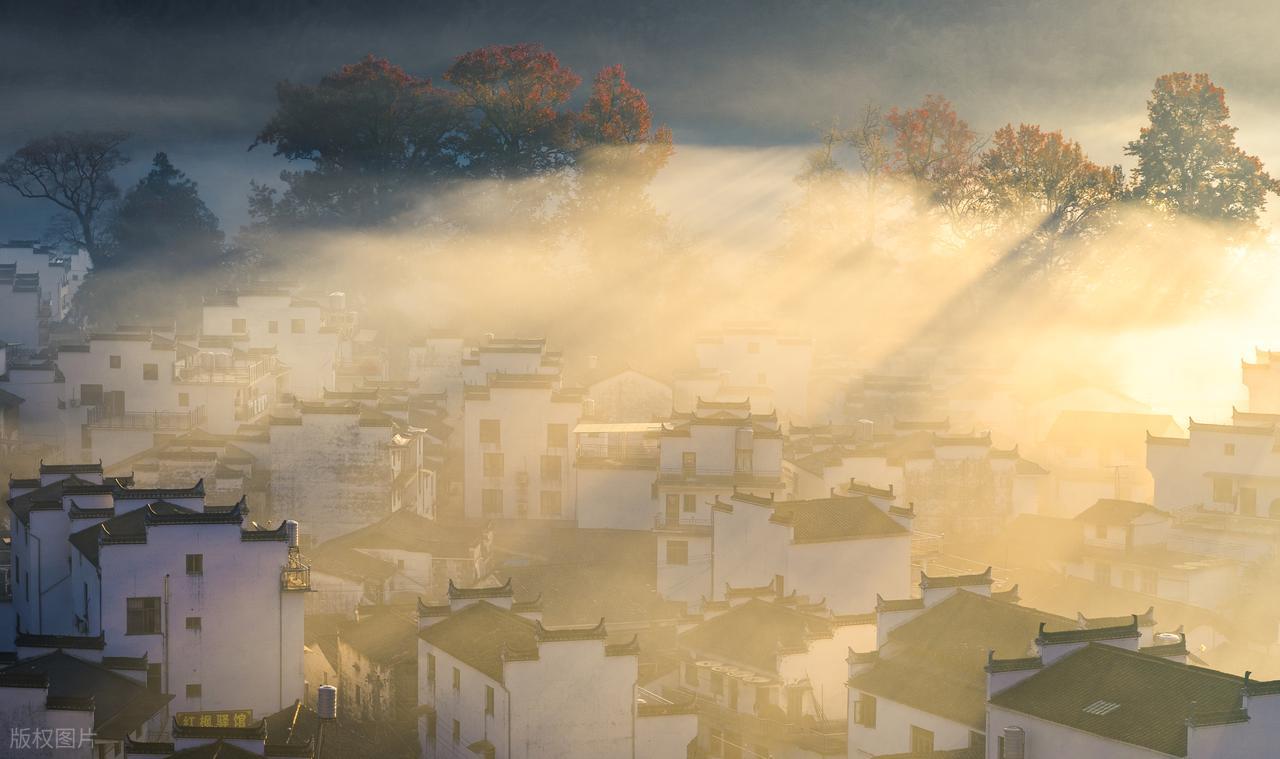 这里的晨雾、红叶、徽派建筑,美得像泼墨山水画。