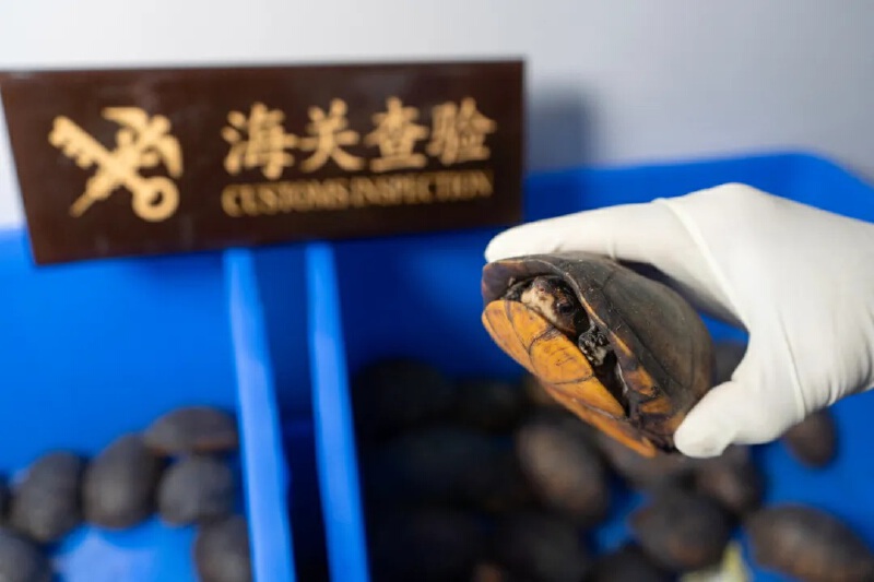 拱北海關稱,涉事車輛 11月 7日在進境客車通道查驗時,機檢圖像異常,關員進一步檢查,在車尾箱備胎格內發現裝在 11個透明網格袋內的 374隻活體龜,經鑑定為紅面蛋龜。司機無法提供合法證明文件,承認是為他人帶貨。