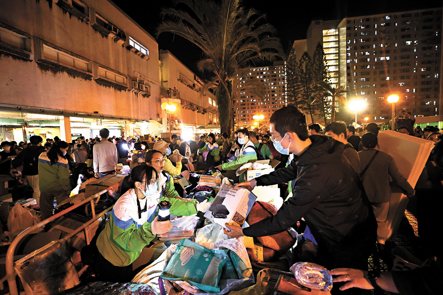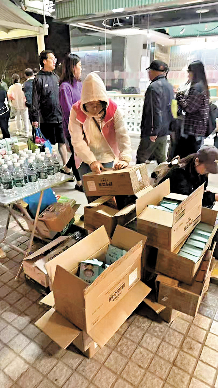 ●大埔宏福苑大火發生已數天,關愛隊及熱心市民不斷捐贈食物、日用品,衣履等物資,送到廣福邨平台讓災民領取。香港文匯報記者曾興偉 攝
