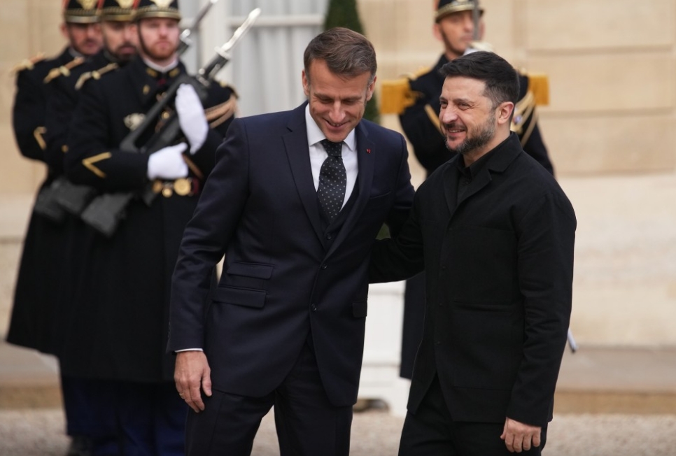 ▲马克龙昨日跟泽连斯基在巴黎会面。美联社
