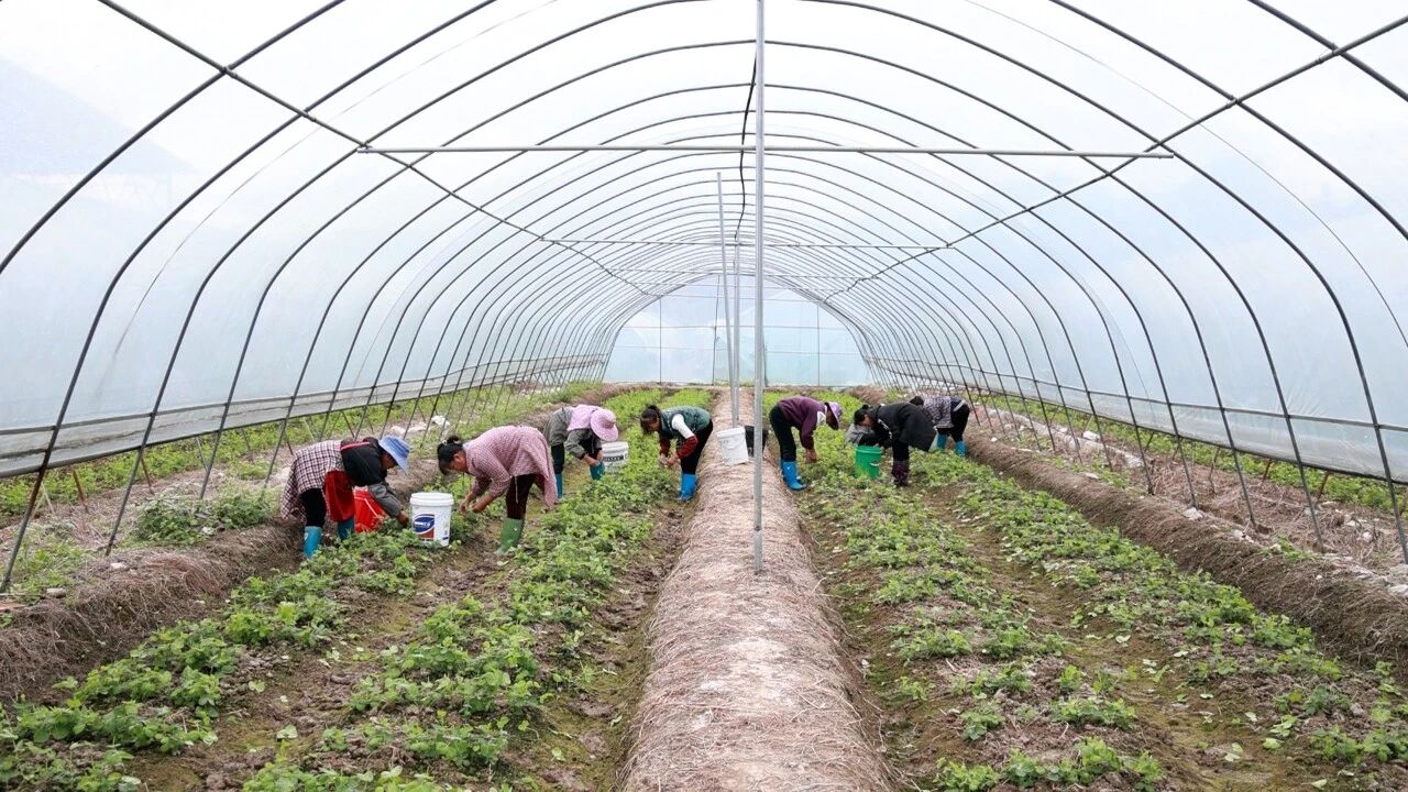 在者密镇银竹农业种植基地,数十名村民正手指翻飞,采摘着今冬第一茬鲜嫩的豌豆尖,采摘期将从入冬一直持续到次年三月。