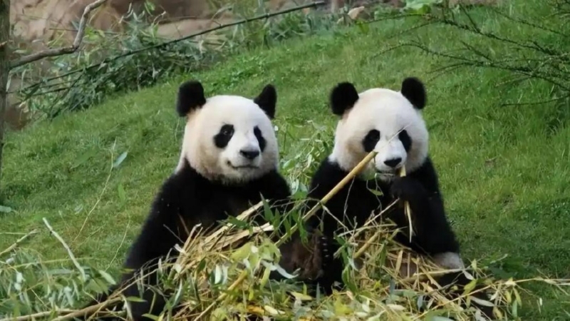 當日下午,馬克龍夫人布麗吉特前往成都大熊貓繁育研究基地,看望首隻在法國出生的大熊貓“圓夢”。“圓夢”的父母大熊貓“圓仔”和“歡歡”日前剛結束13年的旅法生活,返回成都。