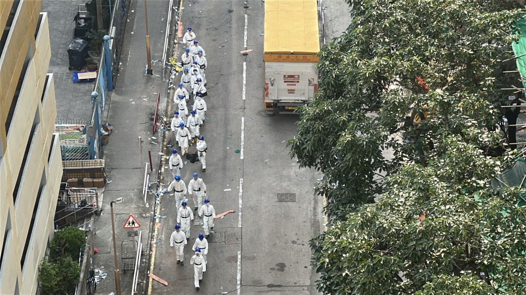 【22:30】警方已完成所有7幢大廈內部範圍的搜索工作。災難遇害者辨認組人員今日在已確定安全的大廈外圍及倒塌棚架附近進行搜索,暫未有發現遺骸,死者數目維持159人。人員亦已將早前找到的懷疑人骨交予法醫作進一步檢測。警方會繼續跟進報稱失聯人士個案,務求儘快確認他們的情況及死傷人數。