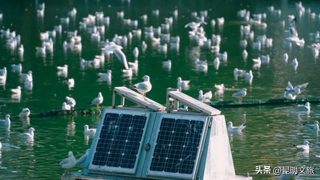 冬日阳光下,成千上万只红嘴鸥在碧波之上翩翩起舞,它们或低空掠过水面,或盘旋于人群之上。