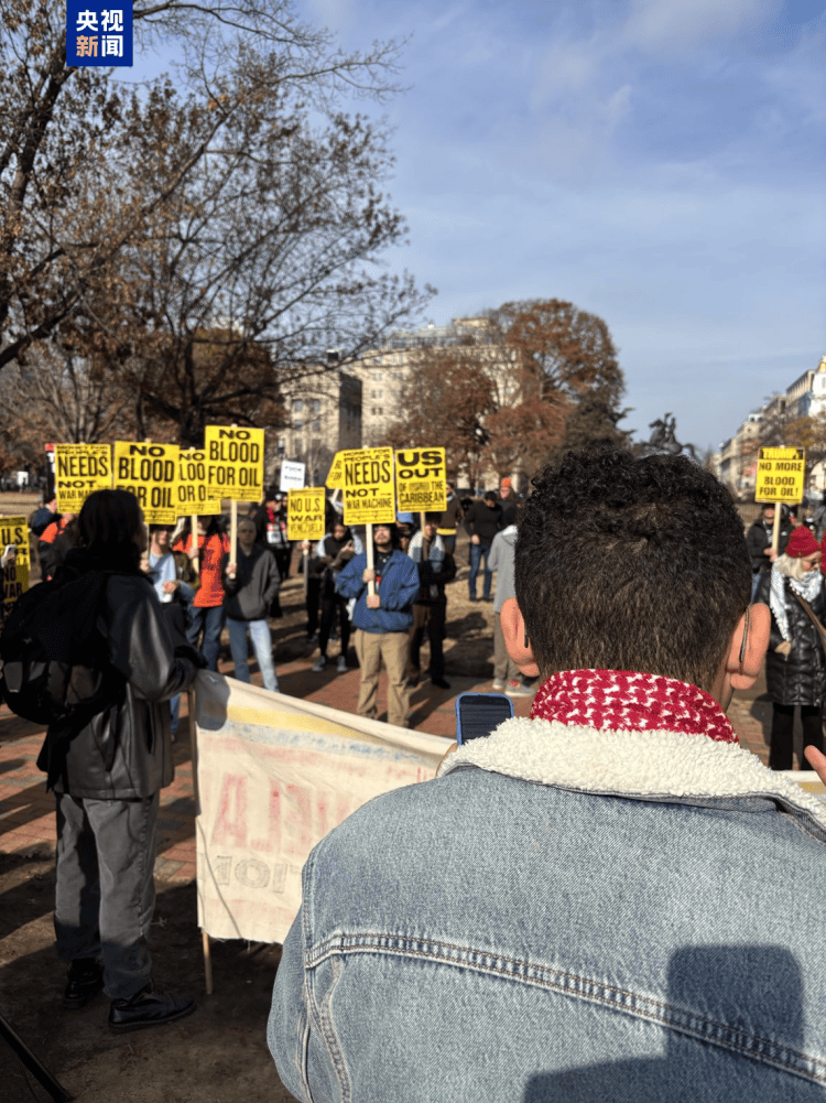 当地时间12月6日,示威者聚集在美国白宫前,抗议政府针对委内瑞拉的军事行动。央视记者获悉,全美已有超过60个城市举行相关示威活动。