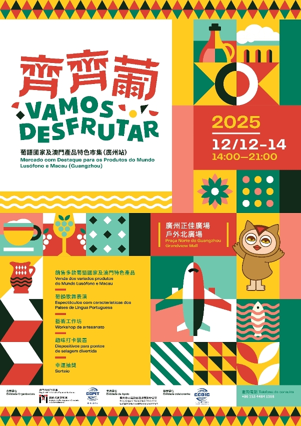 2025“齊齊葡-葡語國家及澳門產品特色市集”(廣州站)將於12月12日至14日(周五至周日)在廣州正佳廣場戶外北廣場舉行