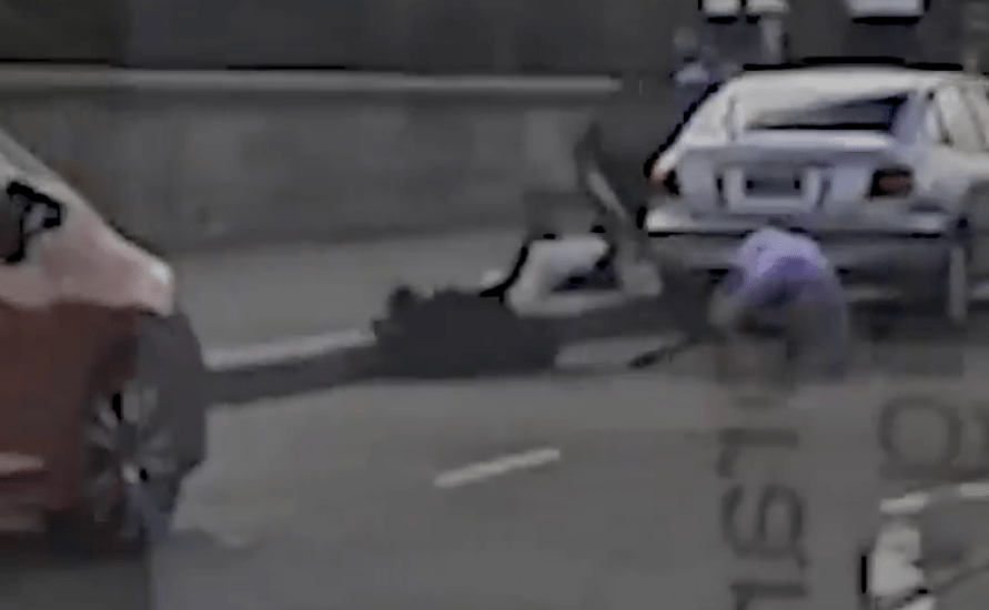 ▲网上影片显示,50岁的枪手赛义德·阿克拉姆从其汽车走出来时,正在散步的鲍里斯见状即将对方扑倒在地。X@TridentxIN
