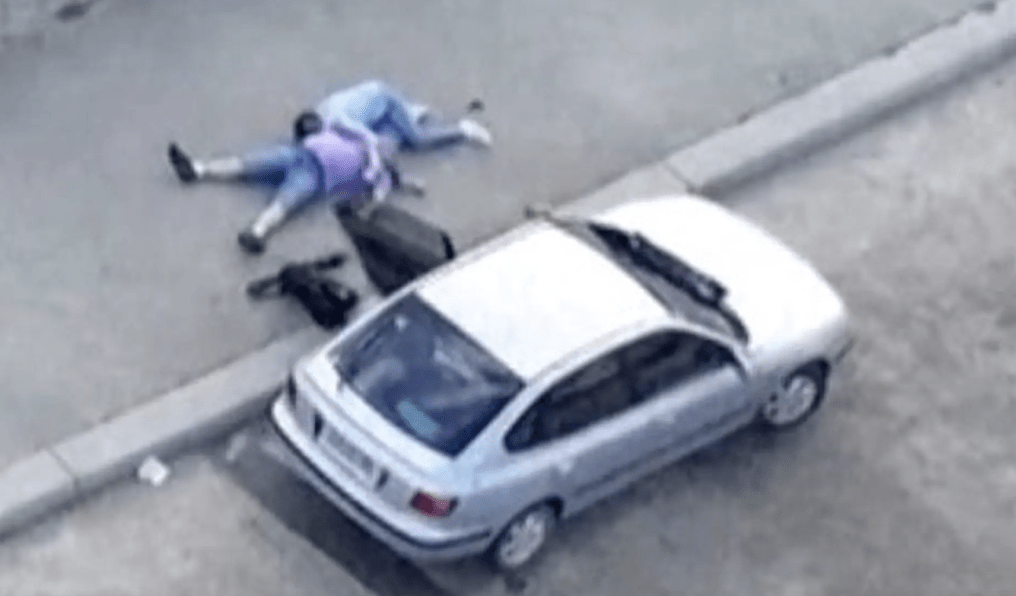 ▲网上影片拍到,50岁的枪手赛义德·阿克拉姆从其汽车走出来时,正在散步的鲍里斯见状即将对方扑倒在地,并夺下其枪支。路透社