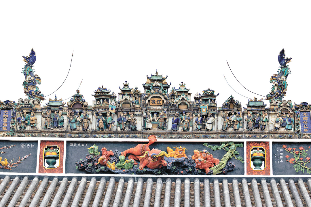 屋脊上的鳌鱼不仅有着独占鳌头的吉祥寓意,也体现了岭南的亲水、敬水文化。