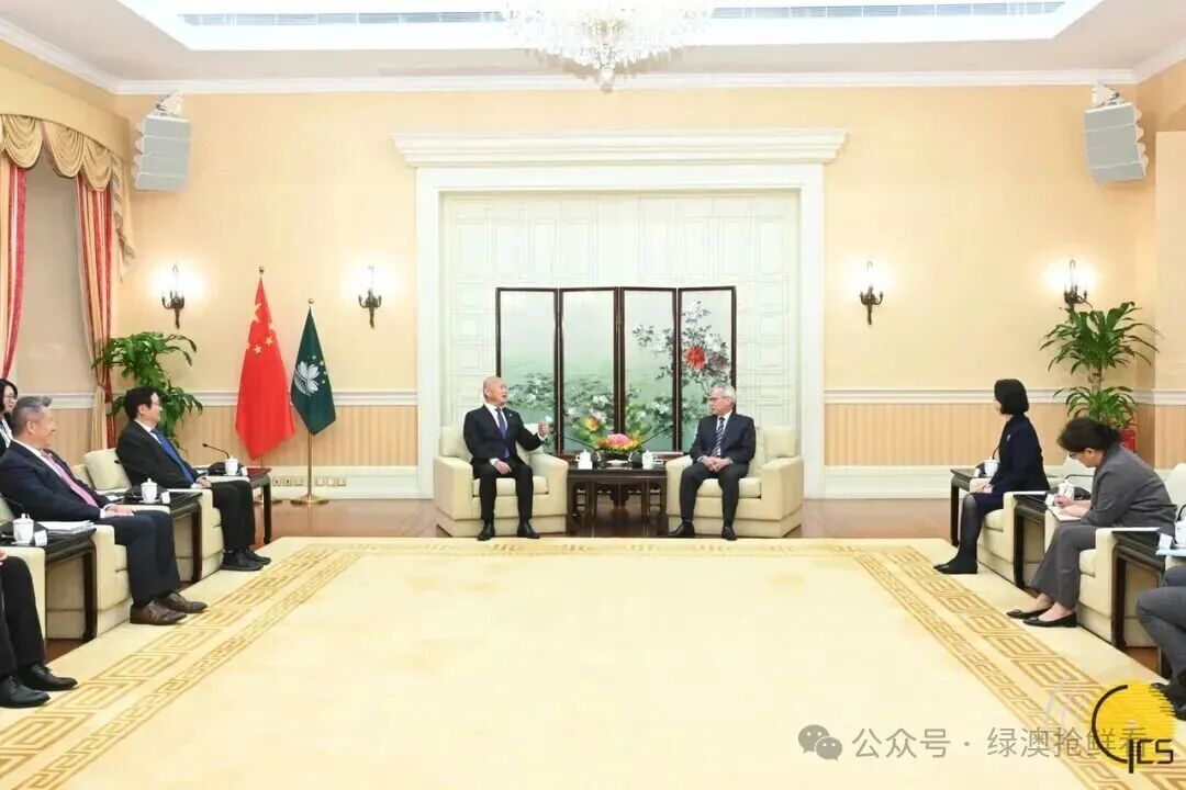 出席會見的還有社會文化司司長柯嵐、行政長官辦公室主任陳格、教育及青年發展局局長龔志明,以及澳門城大校董會副主席顏澤賢、校長劉駿、副校長周萬雷及葉桂平等。