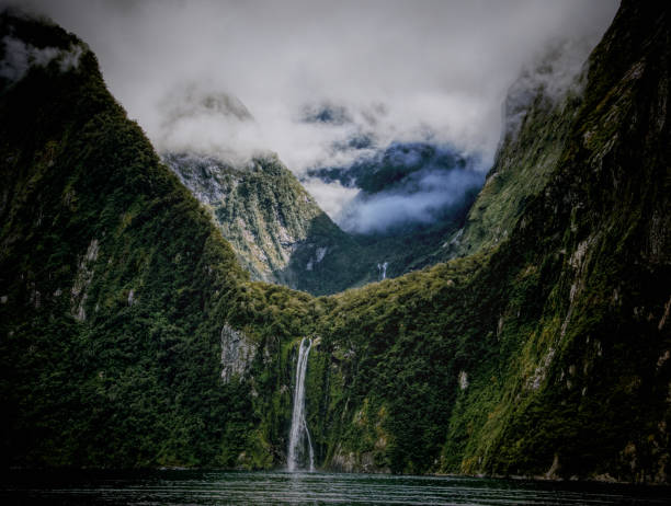 在新西兰南岛的 Fiordland 国家公园,米尔福德峡湾藏在原始雨林深处,是冰川运动留下的“自然杰作”——两侧是垂直的悬崖峭壁,最高的超过1200米,瀑布从崖顶直坠海面,雨林的绿与海水的蓝碰撞出震撼的美。