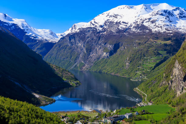 夏天的盖朗厄尔峡湾,山顶的积雪还没融化,山脚下的草甸开满了黄色的野花,乘游船时能看到瀑布的水雾在阳光下形成彩虹,偶尔有驯鹿从山坡上跑过;冬天的峡湾被冰雪覆盖,变成了白色的世界,夜晚坐在峡湾边,能看到绿色的极光在天空中舞动,与雪山、峡湾构成一幅梦幻的画面;徒步“老鹰之路”,沿途的观景台能俯瞰整个峡湾,弯曲的公路像银蛇一样缠绕在山间,壮观得让人说不出话。