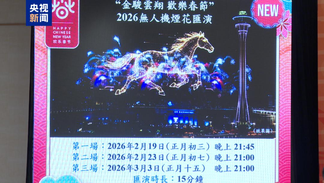 值得一提的是,“金骏云翔 欢乐春节”无人机烟花汇演是澳门首次引入的新春贺岁活动。