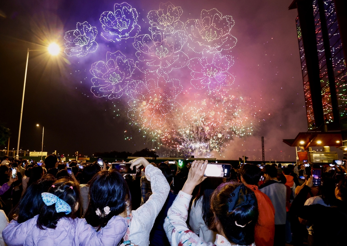 首度推出的“金駿雲翔 歡樂春節”2026無人機煙花匯演同日晚上於旅遊塔對出海面上演,採用3,888架無人機結合煙花、音樂與雷射效果,約15分鐘的演出以生肖馬與新春祝福為主題,融合創新科技與傳統節慶元素,增強演出的層次感與觀賞性,豐富節慶體驗。第二及第三場無人機煙花匯演場次將於年初七(2月23日)及正月十五(3月3日)晚上9時再度上演。