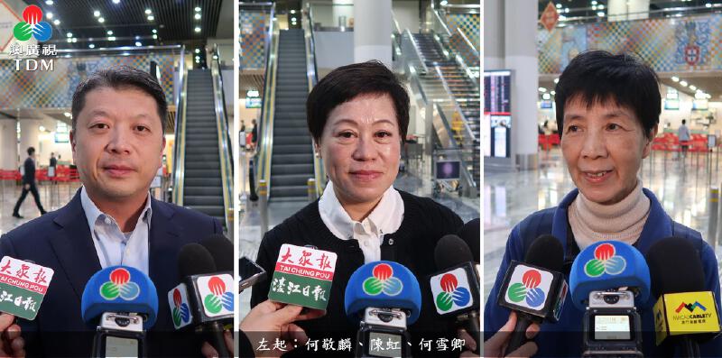 澳區全國人大代表何敬麟關注本澳如何融入和服務粵港澳大灣區發展,以及未來大灣區的數據資訊融合;澳區全國人大代表陳虹關注大灣區未來如何做好硬聯通、軟聯通及心聯通,便利本澳居民在兩地生活;澳區全國人大代表何雪卿關注本澳如何把握“十五五”規劃的發展機遇,以及橫琴粵澳深合區在規則制度銜接及跨境數據方面如何加速發展,以及橫琴乃至大灣區有更多職業資格認可。