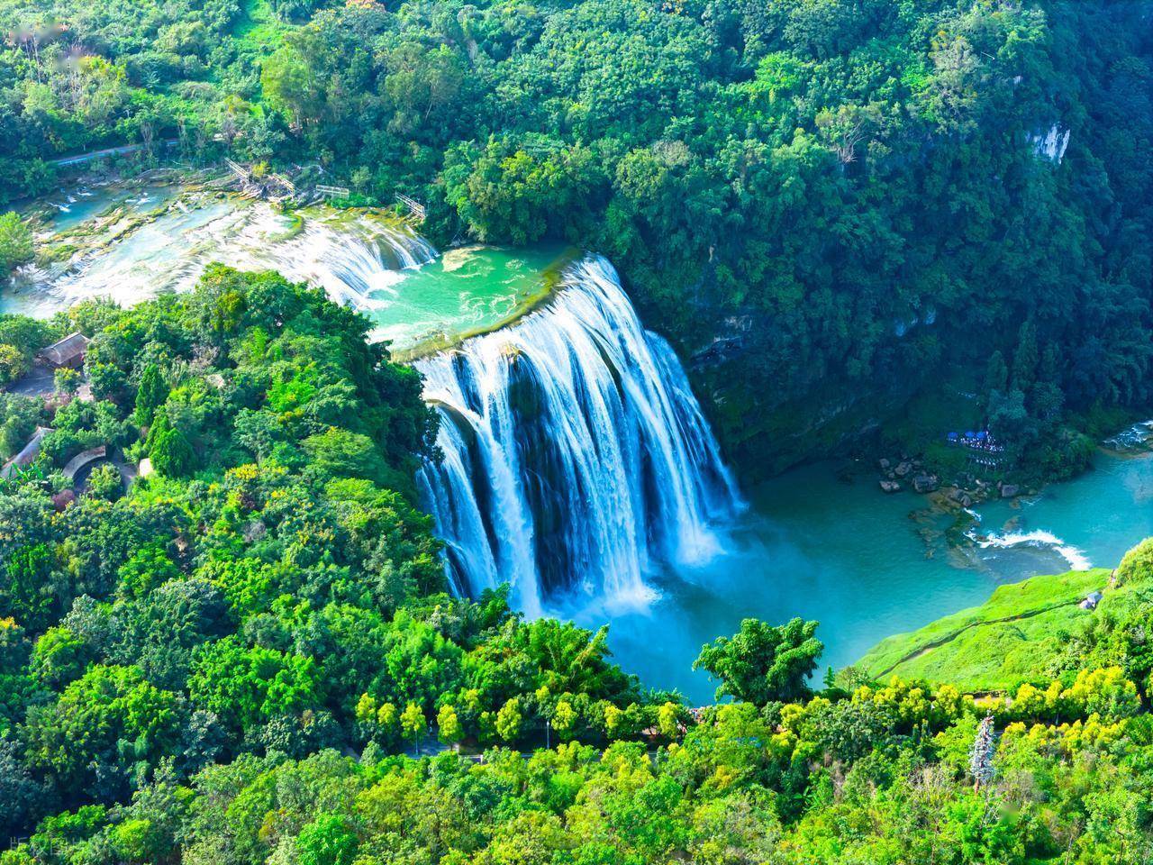 亚洲最大的瀑布群,包含黄果树大瀑布、陡坡塘瀑布、天星桥三大核心景区。黄果树大瀑布高77.8米,宽101米,雨季水量充沛时,瀑布声震耳欲聋,水雾弥漫在山谷间;陡坡塘瀑布是《西游记》取景地,宽达105米,水流平缓如纱;天星桥的银链坠潭瀑布,像无数银链坠入深潭,堪称“天下最秀美的瀑布”。