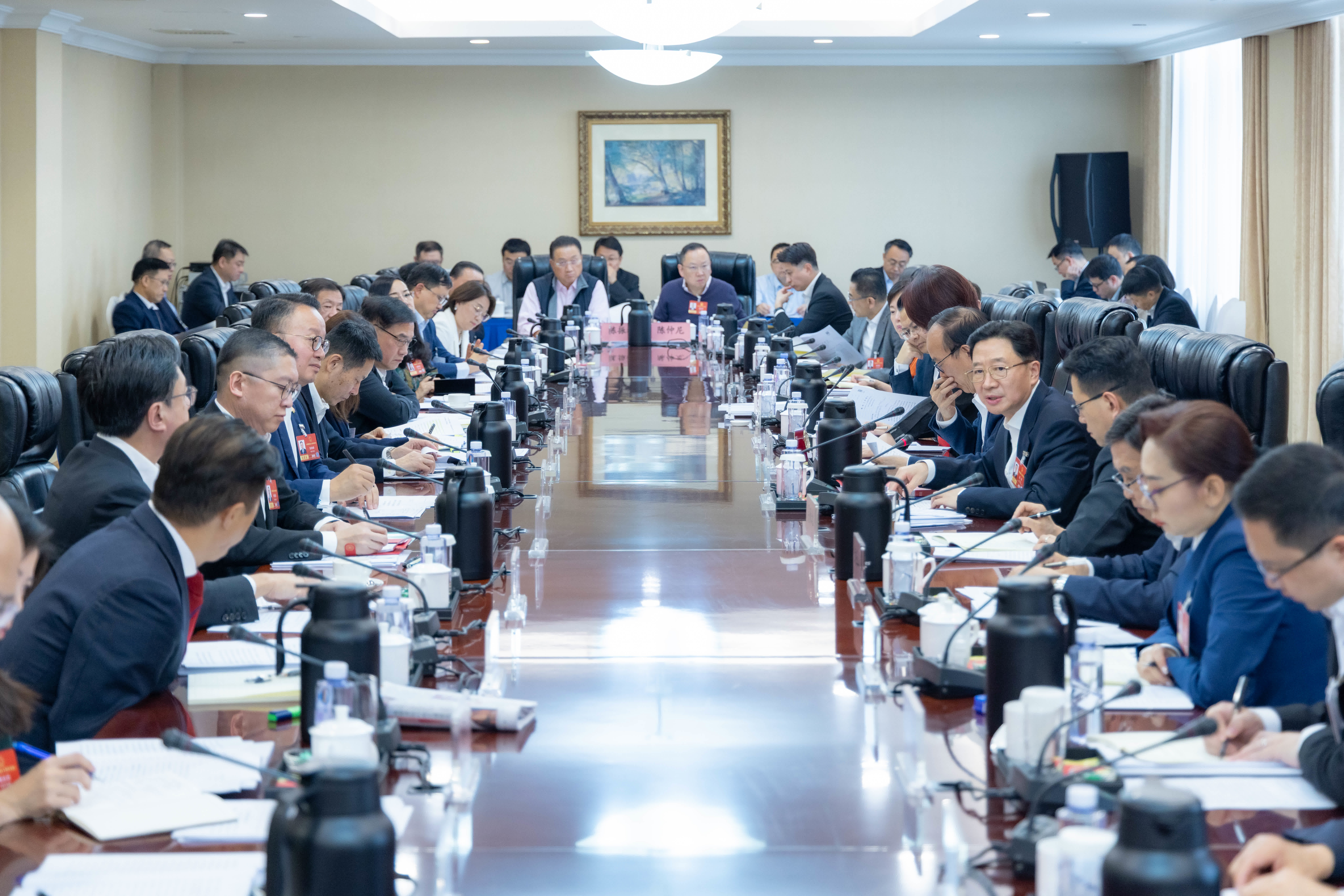 去年底,習近平主席在聽取李家超行政長官述職時,對做好特區工作提出殷切期望,我們要認真學習貫徹、全面抓好落實。要堅持和完善行政主導,全力支持行政長官和特區政府依法施政,不斷提升特區治理效能,促進香港經濟社會發展;堅持統籌發展和安全、統籌開放和安全、統籌傳統安全和非傳統安全,以高水平安全護航高質量發展;繼續支持香港更好融入和服務國家發展大局,發揮香港背靠祖國、聯通世界獨特優勢和重要作用,促進香港長期繁榮穩定,為強國建設、民族復興作出更大貢獻。