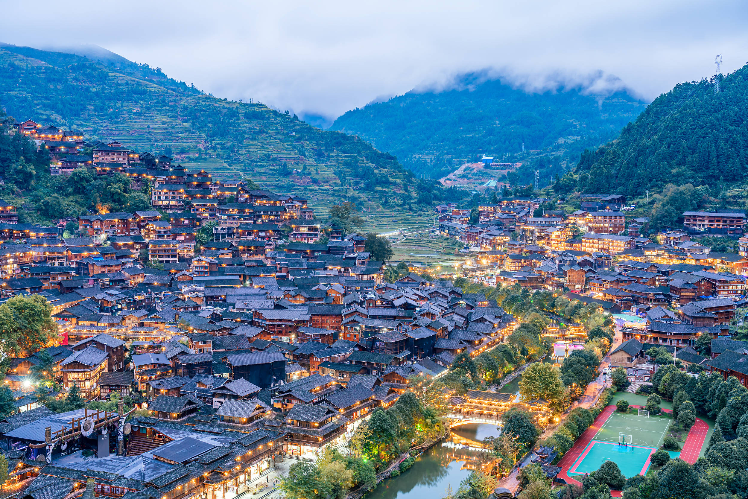 这里是贵阳近年来的新晋顶流。白天,它是安静的欧式风格老街;傍晚开始,后备箱集市、移动咖啡车、街头调酒师陆续登场,瞬间变身活力四射的潮流街区。建议傍晚5-7点前往,既能拍到白天建筑的通透感,又能捕捉华灯初上、霓虹闪烁的赛博朋克风,氛围感直接拉满。