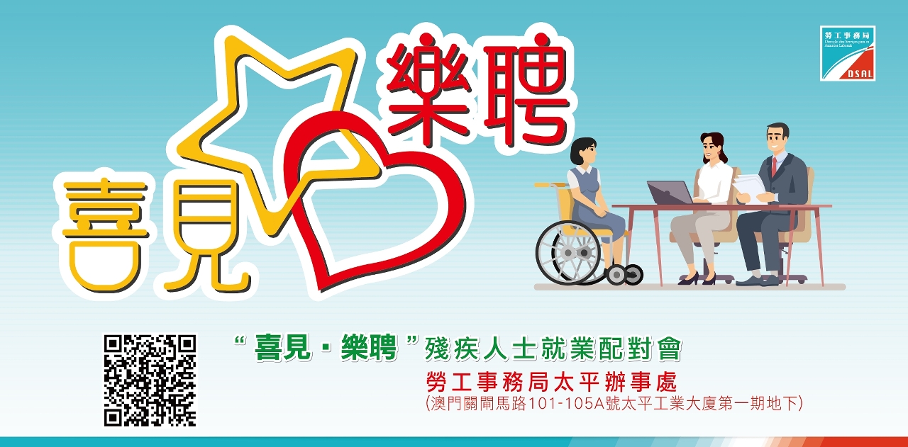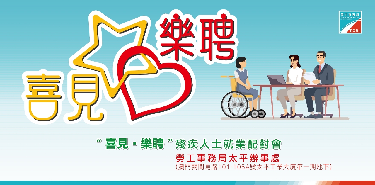 為推動僱主給予殘疾人士更多就業機會,鼓勵殘疾人士投入職場,勞工事務局(下稱“勞工局”)將於6月3日在太平辦事處職業培訓中心(地址:澳門關閘馬路101-105A號太平工業大廈第一期地下)舉辦“喜見・樂聘”殘疾人士就業配對會,招聘空缺收集期由3月16日至3月26日,歡迎企業踴躍參與,支持殘疾人士公開就業。
