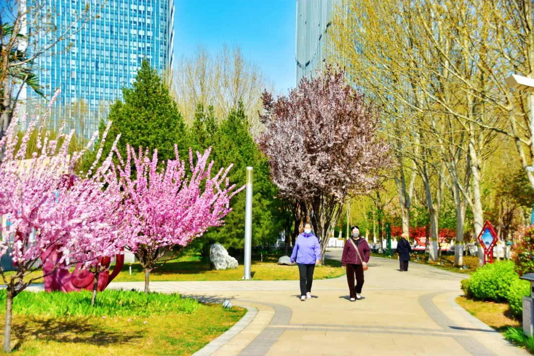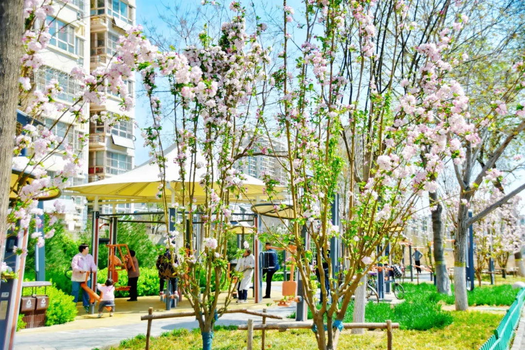 街角的口袋公园里,更是藏着不期而遇的春日惊喜。草木抽新、绿意铺陈,繁花缀满枝头。老人们围坐在一起,闲话家常、笑意盈盈;孩童们追着春风奔跑嬉戏,清脆的笑声随风飘散。每一处烟火场景,都藏着定州春日的生机与温情。
