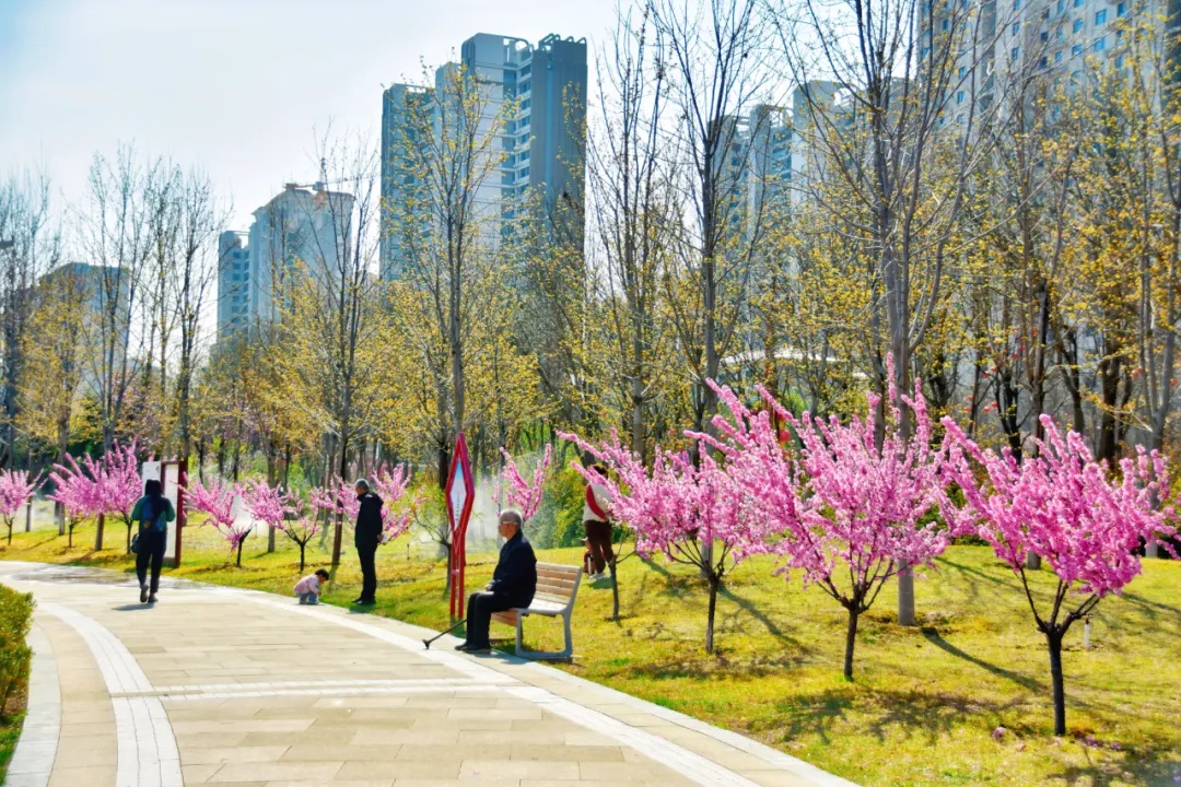 春意顺着街巷蜿蜒绵延,一路铺展至公园。园内绿意葱茏,繁花似锦,处处皆是生机盎然的春日景象。市民或在步道上悠然漫步,感受春风拂面的惬意;或在长椅上静坐休憩,在自然的春意与静谧中,尽情享受春日的闲适与安然。