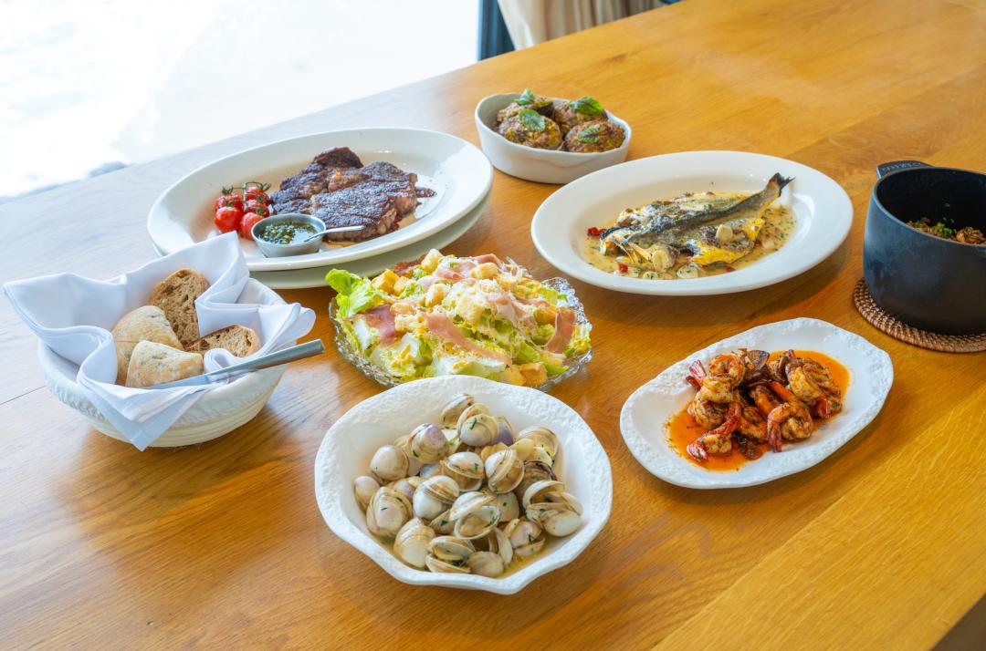 七栩只有一间餐厅,叫做【种橄榄的鱼】,这是一间全日制海景餐厅。推荐窗边的座位,能直面礁石与海浪,在这里吃饭,风景比菜更下饭。