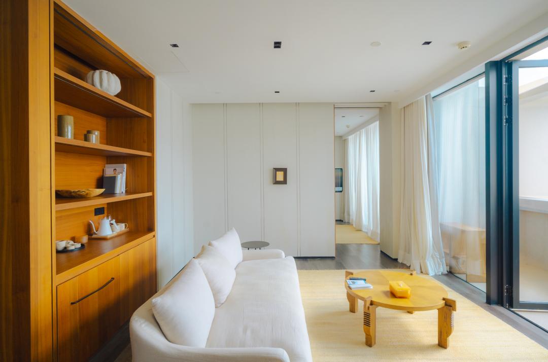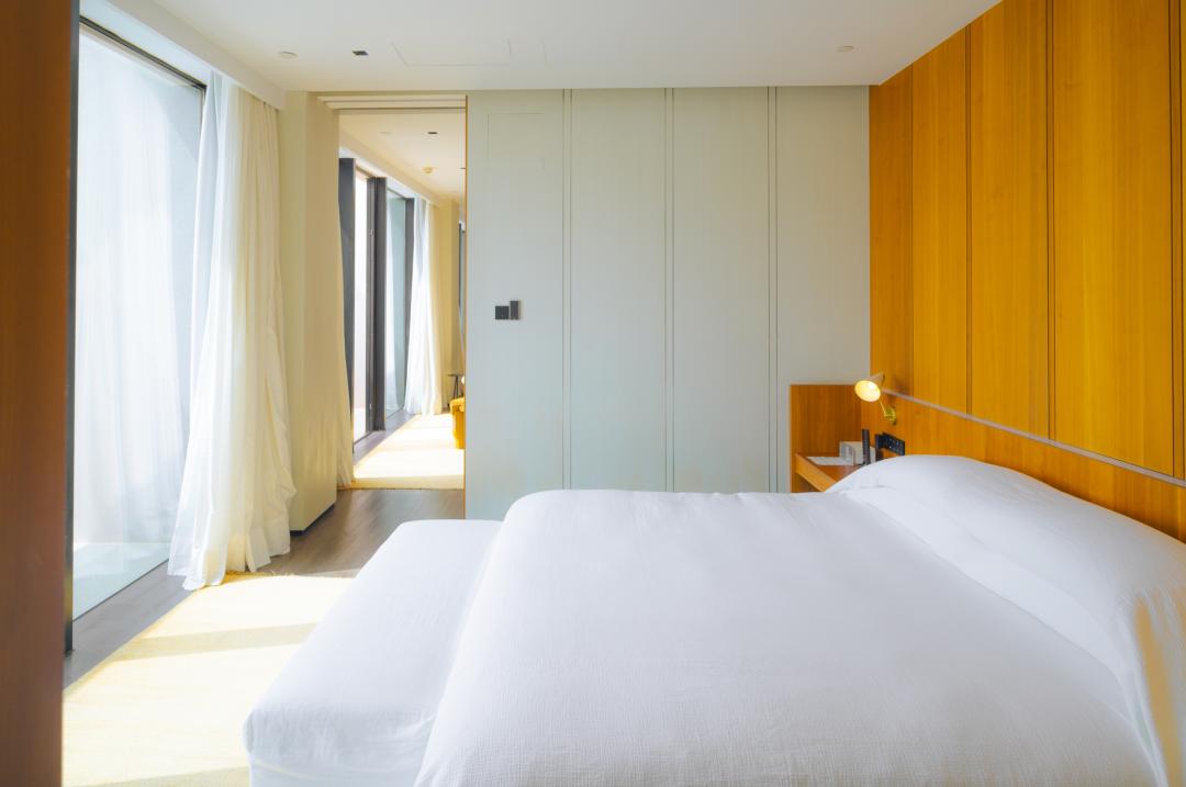 我们这次入住的是海境套房,米白的墙、原木、棉麻......并没有多余的装饰,只有光影在地板上慢慢移动。