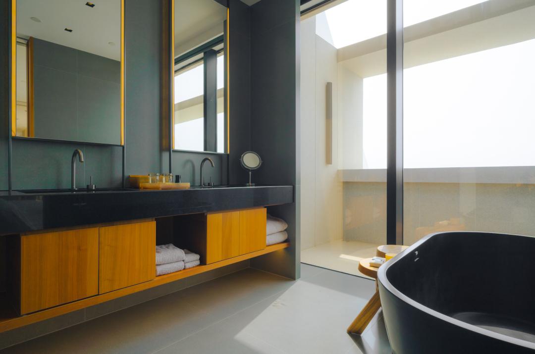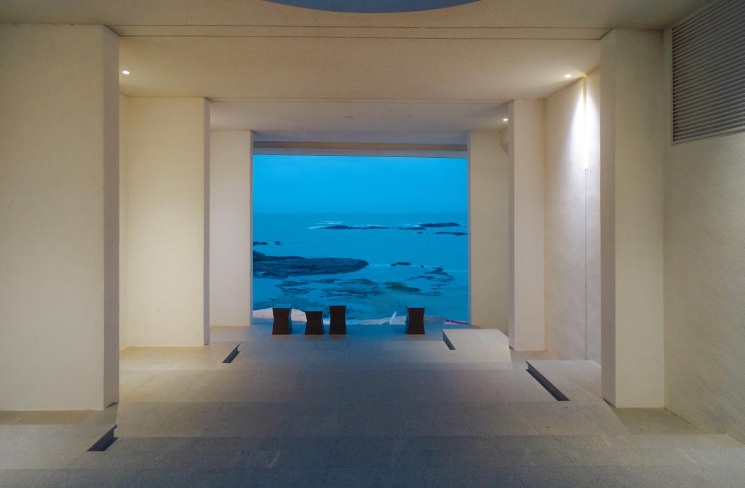 汤谷仪式堂位于酒店顶层,名字取自《山海经》,为传说中九个太阳轮值前的洗浴之所。这里拥有广阔的海洋、沙滩与礁石景致。