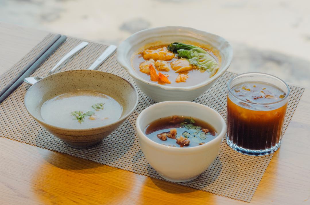 早餐是半自助结合单点,自助区有基础的水果和面包果汁,主食单点。推荐鲍鱼沙茶面,底很浓郁,面条Q弹,鲍鱼也新鲜。