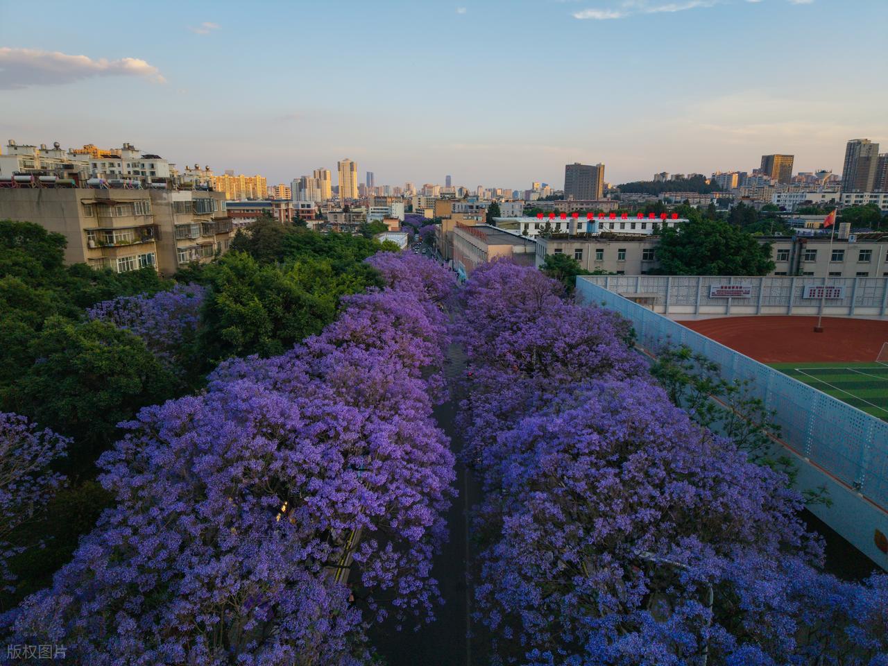 一路繁花,春色撩人。4月的昆明,更是把“春城”二字演绎到极致。而且气温刚刚好,20℃出头,不冷不热,舒服到不想走!街头巷尾的蓝花楹次第绽放,紫雾漫街,搭配澄澈蓝天,随手一拍都是绝美大片,满城鲜花肆意盛放,连风里都飘着花香。