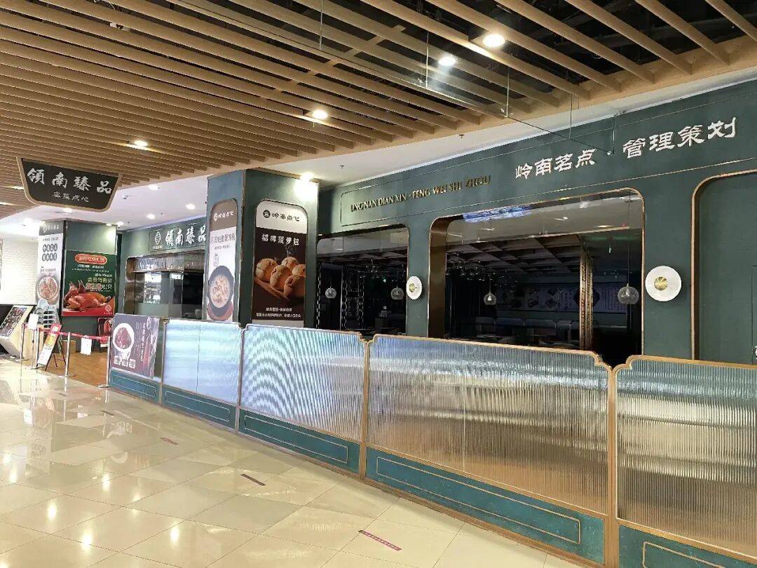 在领南臻品·粤菜茶点(永旺店)旁边餐饮店工作的阿姨说:“这家门店在4月20日就没有开了,平时都是早上10点开门营业的。”