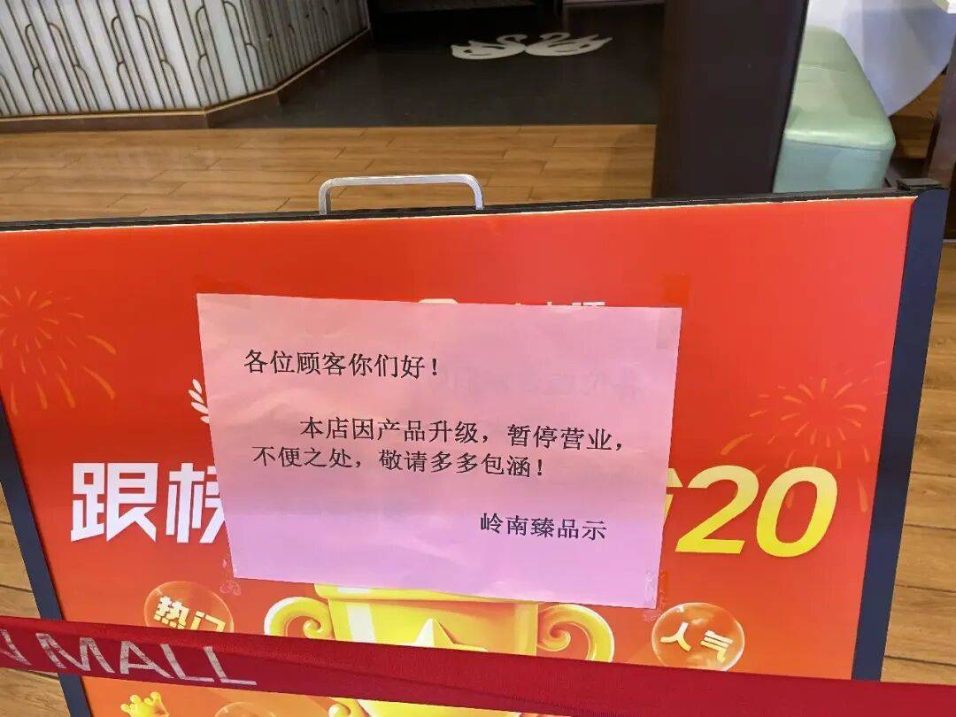 “记者帮”通过多方途径核实,涉事门店为领南臻品·粤菜茶点(永旺店)。4月21日,“记者帮”实地走访该门店,发现门店暂未营业,门口拉起了红色围栏线。门口还贴有“店铺调整中,注意安全,请勿入内”等相关提示语,其中,有一份提示语为领南臻品示:“本店因产品升级,暂停营业,不便之处,敬请多多包涵!”