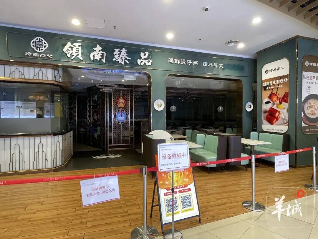 “记者帮”从商场管理方工作人员出示的停业整改通知书中留意到,领南臻品·粤菜茶点(永旺店)所属企业为广州领南粥铺有限公司。企查查显示,该公司在2021年9月1日成立。