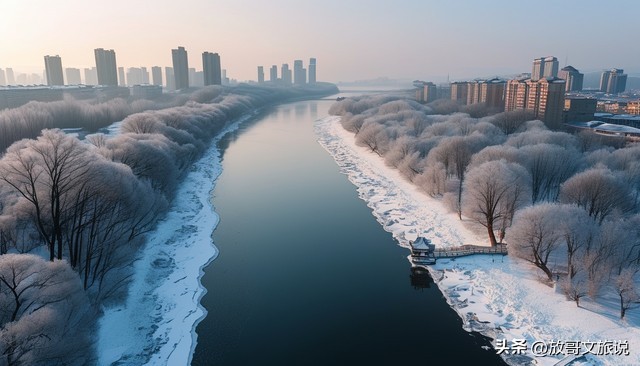 最推荐的地方叫“阿什小雾凇岛”,不收门票!比收费的雾凇岛人少,拍照不用抢位置。旁边就是松花江,江上雾气弥漫,岸上树枝挂满冰晶,美得不像真的。