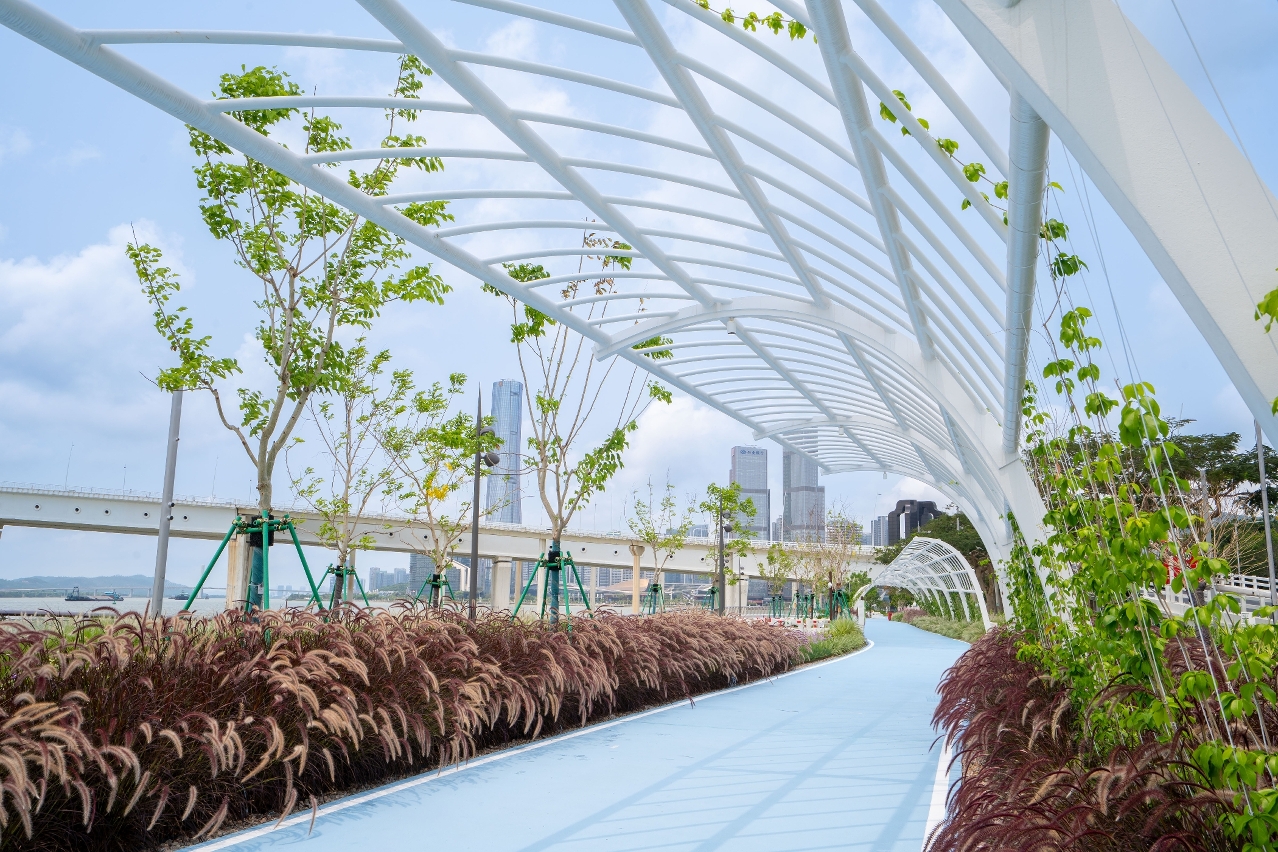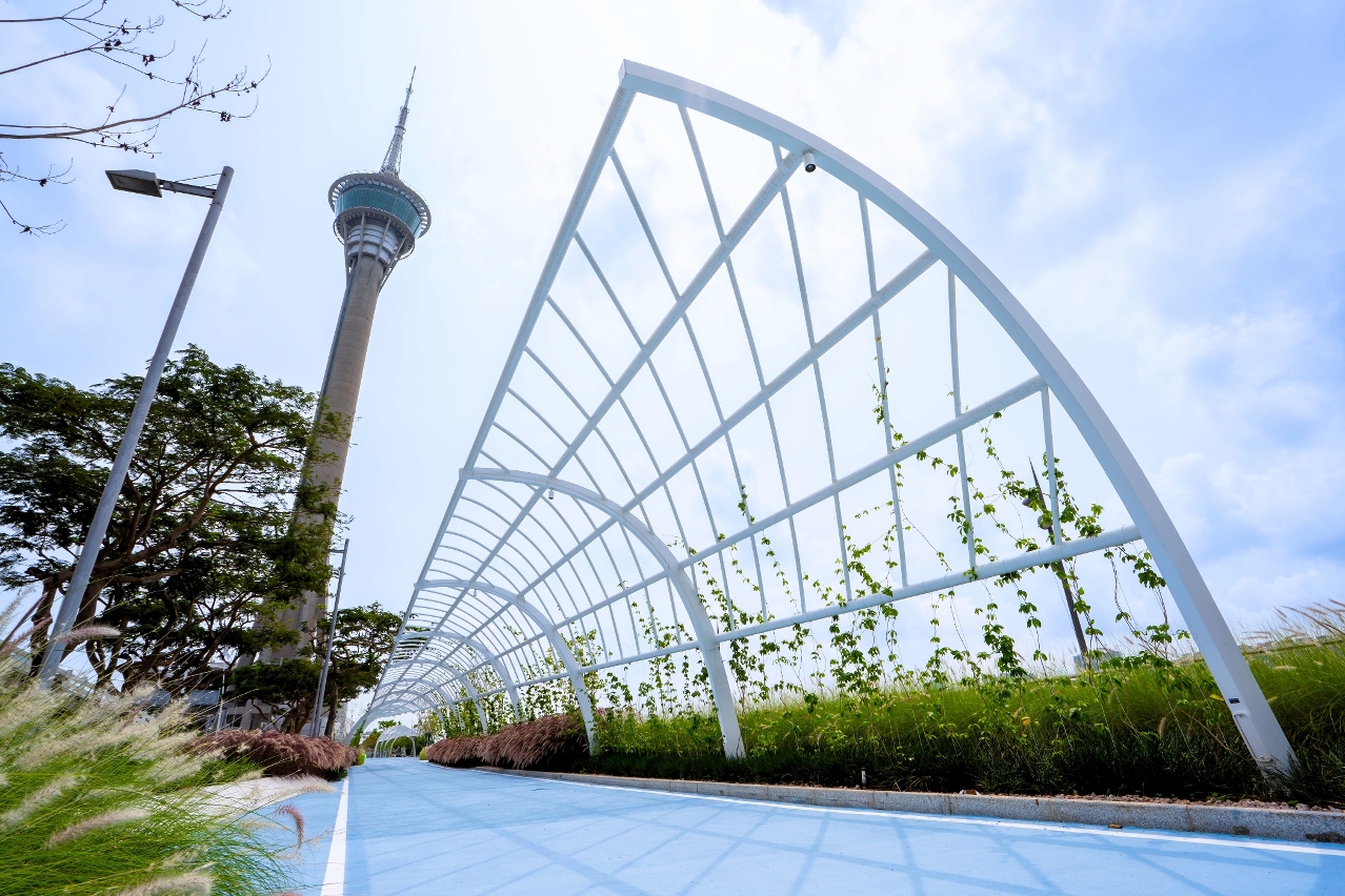 市政署按計劃分三區有序推進南岸海濱綠廊二期工程,繼一區於去年11月開放使用,介乎澳門旅遊塔至融和門之間的二區今(4月23日)起開放予公眾使用。
