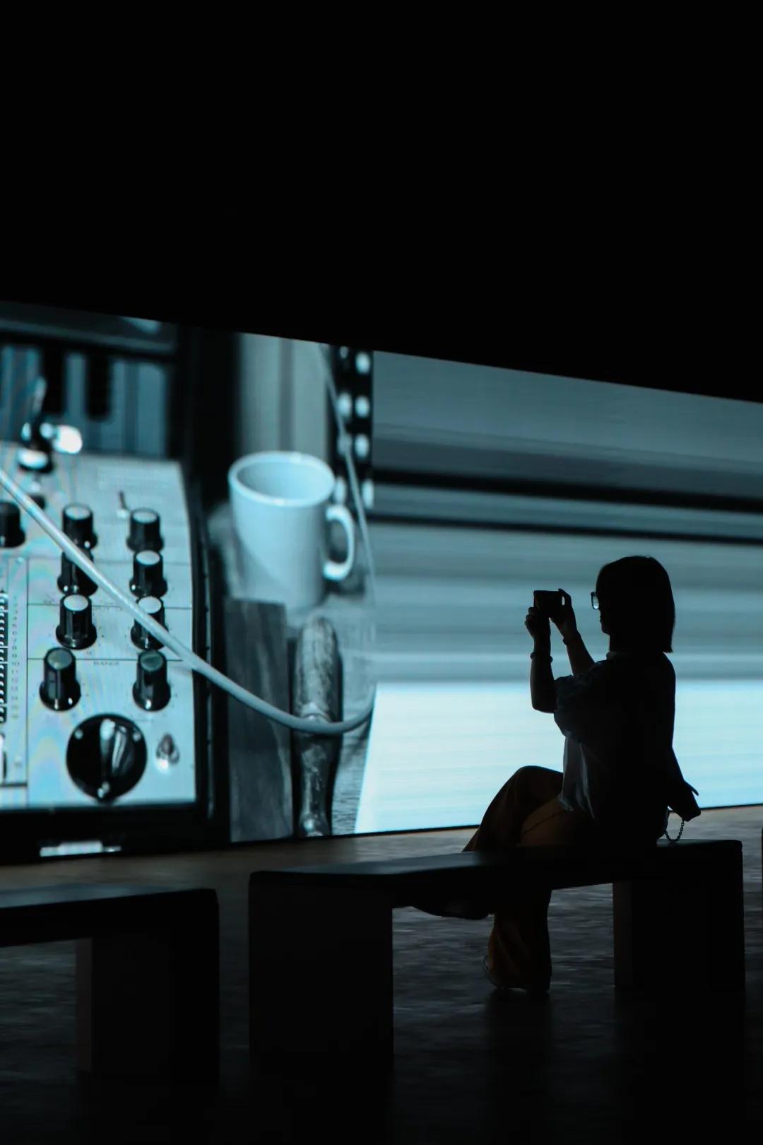 音乐转化为流动的视觉影像,他最后一张专辑《12》中的环境采样声与钢琴断章在整个展厅中环绕。