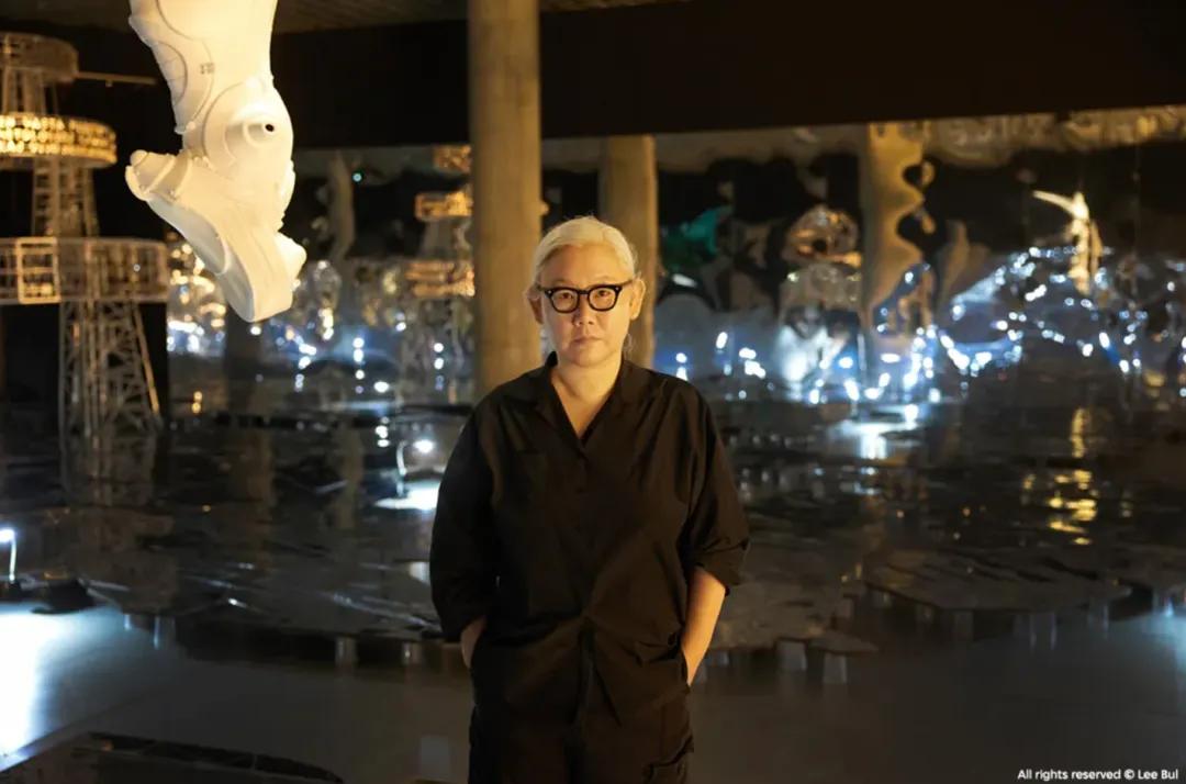 她用赛博格、建筑装置和闪烁的霓虹灯光,构建出一整套关于人类与科技共生、乌托邦终将幻灭的宏大叙事——