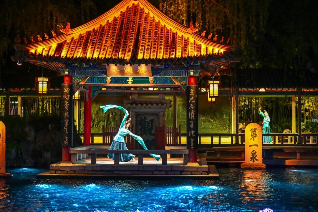 趵突泉景区推出“趵突夜画”夜游项目,以“济南名士、宋词意境”为灵魂,以“二安”文化为线索,通过光影技术与艺术演绎,带领游客欣赏“夜光趵突”奇景,感受“古今交融”的文化温度。