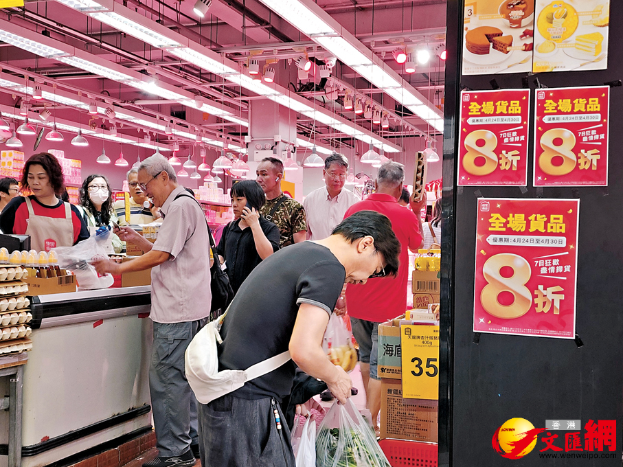 (香港文匯報記者 李芷珊)香港超市掀起減價戰,繼兩大龍頭超市上周推出八八折優惠後,惠康前日亦一連兩天在網店加推八八折優惠,其他超市馬上加入戰團,大型網購平台HKTVmall昨日推出八五折大型優惠,被內地電商京東收購的佳寶食品超級市場更由上周五(24日)至本周四(30日)全線門店貨品八折,成為折扣力度最大的一間。香港文匯報記者昨午到上述超市直擊,發現店內人頭湧湧,不少市民仔細比較各款產品減價幅度,甚至一家幾口分頭到不同超市門市掃平貨,最終滿載而歸。有專家指出,本地超市面對內地電商進駐香港和網購潮等競爭,以減價作招徠應對,而本地網購有上升空間,超市長遠除實體店外,亦會加快及優化線上服務,以鞏固客源,這也印證香港零售業有利可圖。